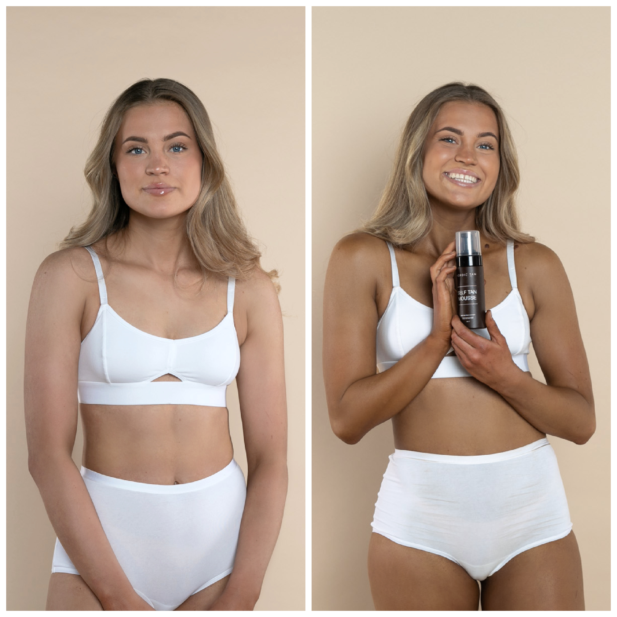 Moussen er en "1-time express"-selvbruning som gir synlig glød etter allerede 1 time – perfekt når det haster. Du får en naturlig solbrun farge etter allerede få timer og kan raskt skylle den av
